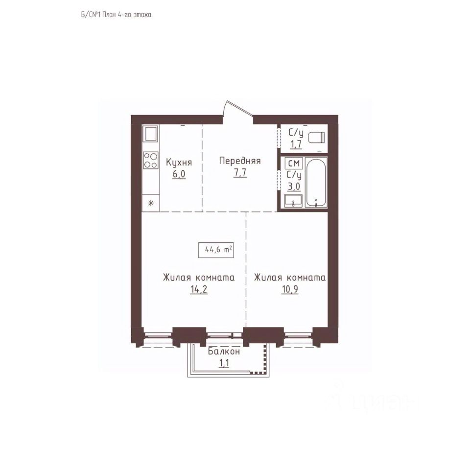 44,6 м²