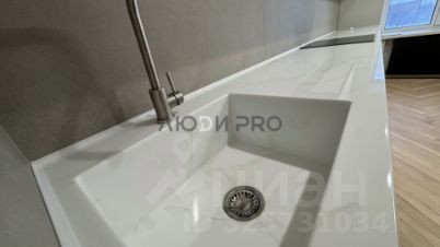 * подоконники и столешница с интегрированной мойкой на кухне — из искусственного камня (практично и стильно).