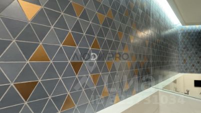 * акцентная стена с мозаикой и подсветкой — стильно и оригинально;