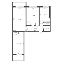 Продаётся трёхкомнатная квартира площадью 62,8 кв. м.