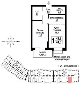 Продаётся 1-комнатная квартира в строящемся доме (Дом 10), срок сдачи: IV-кв. 2029, общей площадью 44 кв.м., на 13 этаже. Новый жилой комплекс "Родные берега" от застройщика "Жилищная Инициатива" расположен по адресу: Алтайский край, г. Барнаул, Центральный район , улица Промышленная
