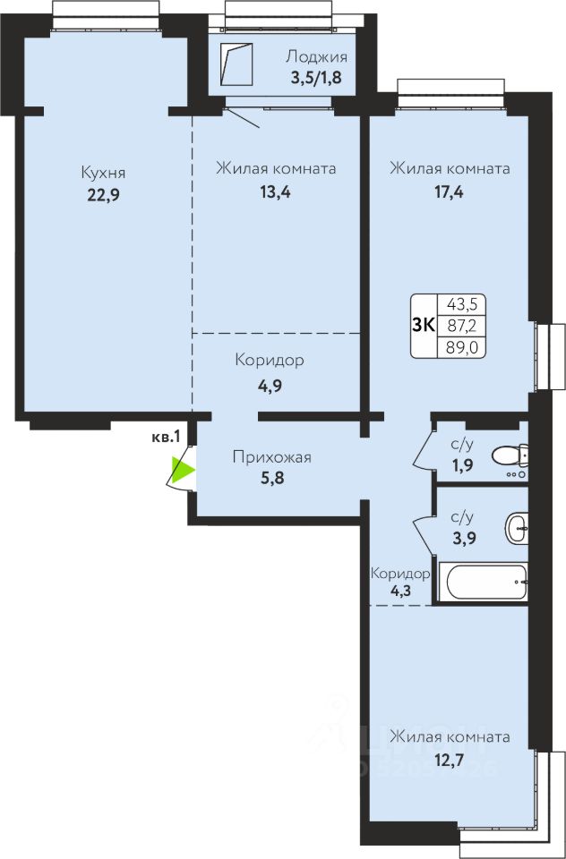 89 м²