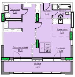Продаётся 2-комнатная квартира в строящемся доме (Дом 1), срок сдачи: II-кв. 2029, общей площадью 58.51 кв.м., на 9 этаже. 10-ти этажный жилой дом в г. Заринске по адресу пр-т. Строителей, 29в. Проектом предлагается 3-х подъездный, 10-ти этажный жилой дом с встроенными на первом этаже помещениями общественного назначения. Исходя из ориентации дома входы в подъезды предусмотрены со стороны двора, тогда как в нежилые помещения - со стороны пр-т. Строителей. Вокруг здания предусматривается круговой проезд для автомобильного транспорта. Парковки для постоянного, временного хранения автомобилей, а также парковки для нежилых помещений предусмотрены, при этом согласно нормативам градостроительного проектирования Алтайского края от 29.12.2022 N 537, машино-мест может располагаться на прилегающей территории более 90 штук. Детские, спортивные площадки запроектированы с учетом нормативных расстояний от жилья и парковок. В жилом доме предусмотрено 222 квартир в том числе: