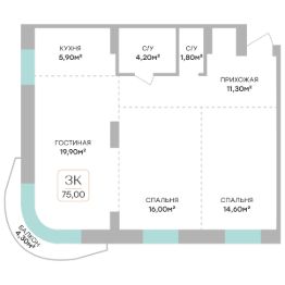 Продаётся 3-комнатная квартира в строящемся доме (Дом 1), срок сдачи: III-кв. 2027, общей площадью 75 кв.м., на 4 этаже. Это проект, внешний облик которого можно сравнить с произведения искусства современного классика - художника и европейского скульптора.