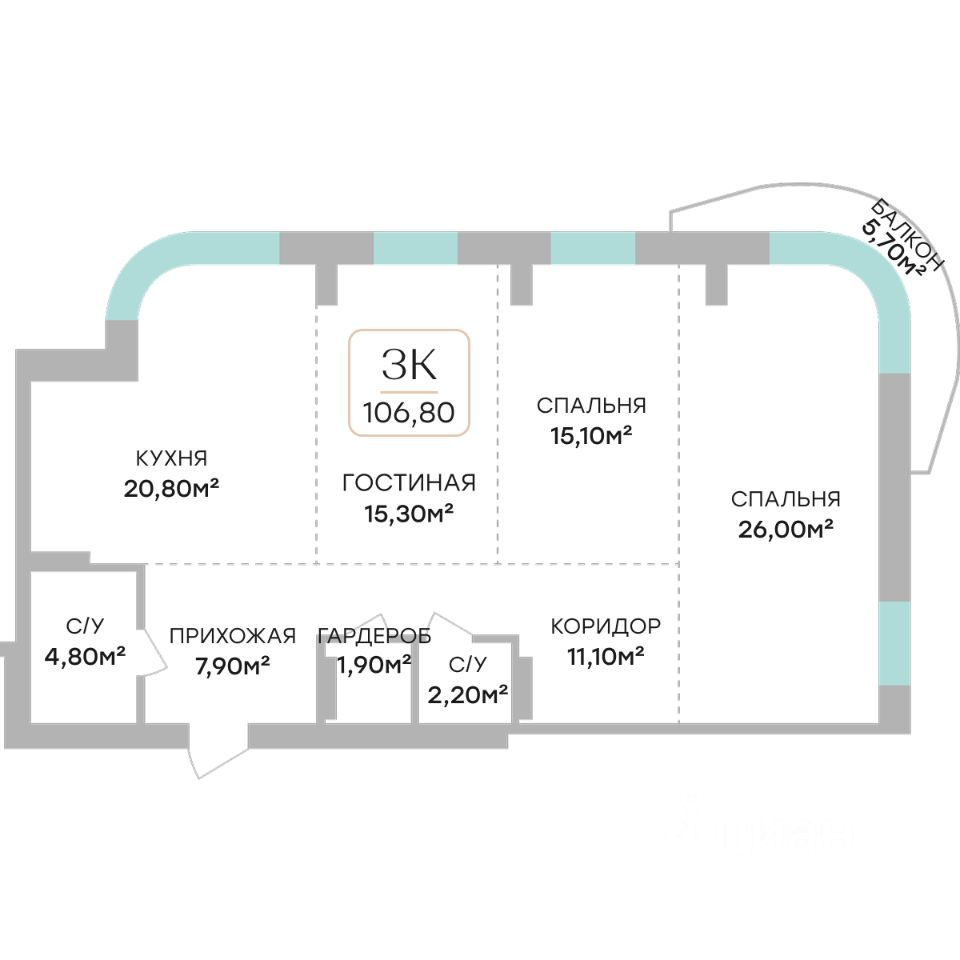 Продаётся 4-комнатная квартира в строящемся доме (Дом 1), срок сдачи: III-кв. 2027, общей площадью 106.8 кв.м., на 6 этаже. Это проект, внешний облик которого можно сравнить с произведения искусства современного классика - художника и европейского скульптора.