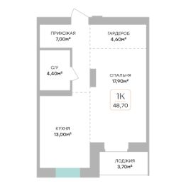 Продаётся 1-комнатная квартира в строящемся доме (Дом 1), срок сдачи: III-кв. 2027, общей площадью 48.7 кв.м., на 6 этаже. Это проект, внешний облик которого можно сравнить с произведения искусства современного классика - художника и европейского скульптора.