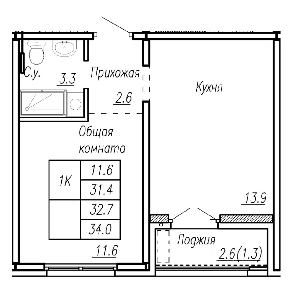32,7 м²