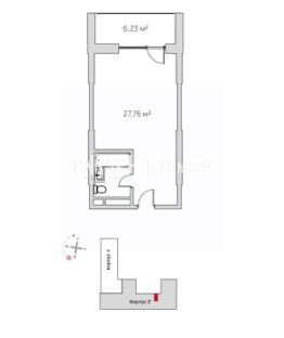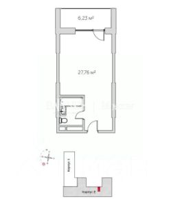 Предлагается к продаже студия в корпусе 2 на 5 этаже восьмиэтажного здания.