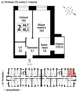 Продаётся 2-комнатная квартира в строящемся доме (Корпус 2), срок сдачи: II-кв. 2027, общей площадью 46 кв.м., на 9 этаже. ЖК "Тургенев" на ул. Чеглецова, 25а представляет из себя два кирпичных здания высотой 9 этажей.