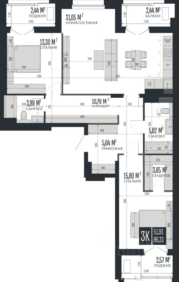 96,31 м²