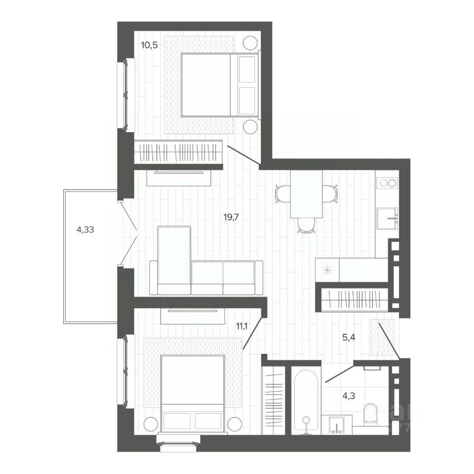 Продаётся 3-комнатная квартира в строящемся доме (Корпус 3), срок сдачи: II-кв. 2026, общей площадью 54.95 кв.м., на 7 этаже. Новый жилой комплекс "Вышка зелёный квартал на горе" от группы компаний "Мой дом" расположен по адресу: г. Барнаул, по ул. Змеиногорский тракт.