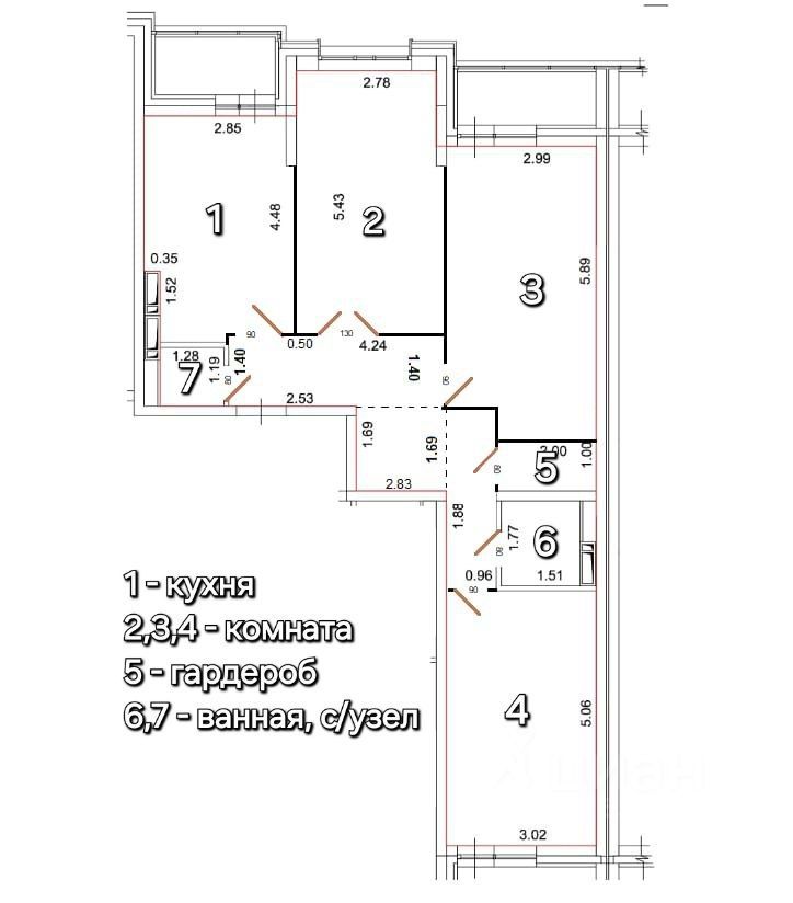 Большинство квартир в этом доме продаются в формате полностью свободная планировка, а здесь уже есть возведённые стены — это действительно выгодно и практично.