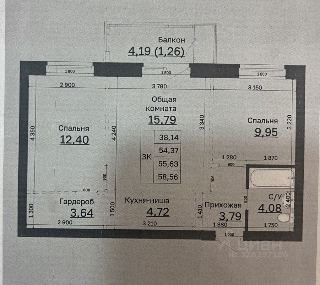56 м²