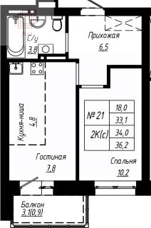 34 м²