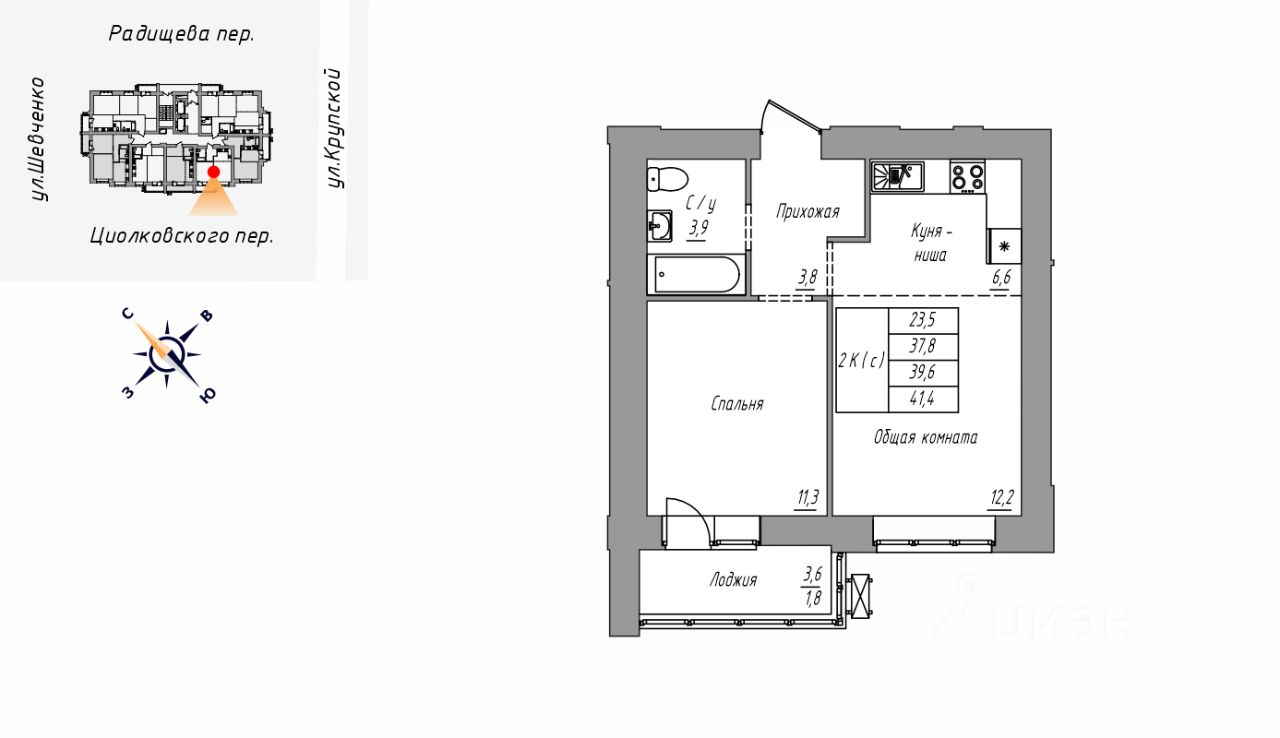 Продаётся 2-комнатная квартира в строящемся доме (Дом 1), срок сдачи: IV-кв. 2027, общей площадью 41.4 кв.м., на 16 этаже. Новый жилой комплекс "На Крупской, 100" от группы компаний "Строительная Перспектива ПСК" расположен по адресу: г. Барнаул, по ул. Крупской.