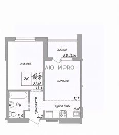 - удобная и при этом компактная европланировка с просторной кухней-гостиной и квадратной спальней;