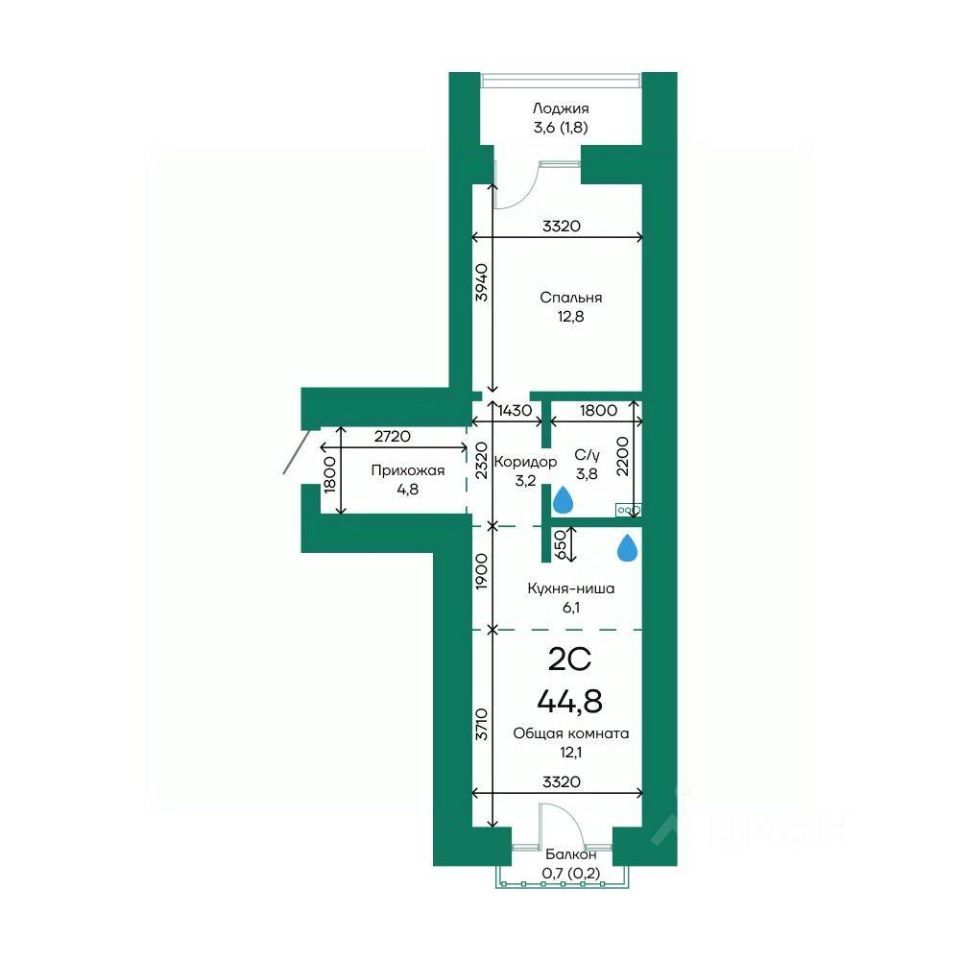 Продаётся 2-комнатная квартира в строящемся доме (Корпус 2), срок сдачи: III-кв. 2026, общей площадью 44.8 кв.м., на 3 этаже.