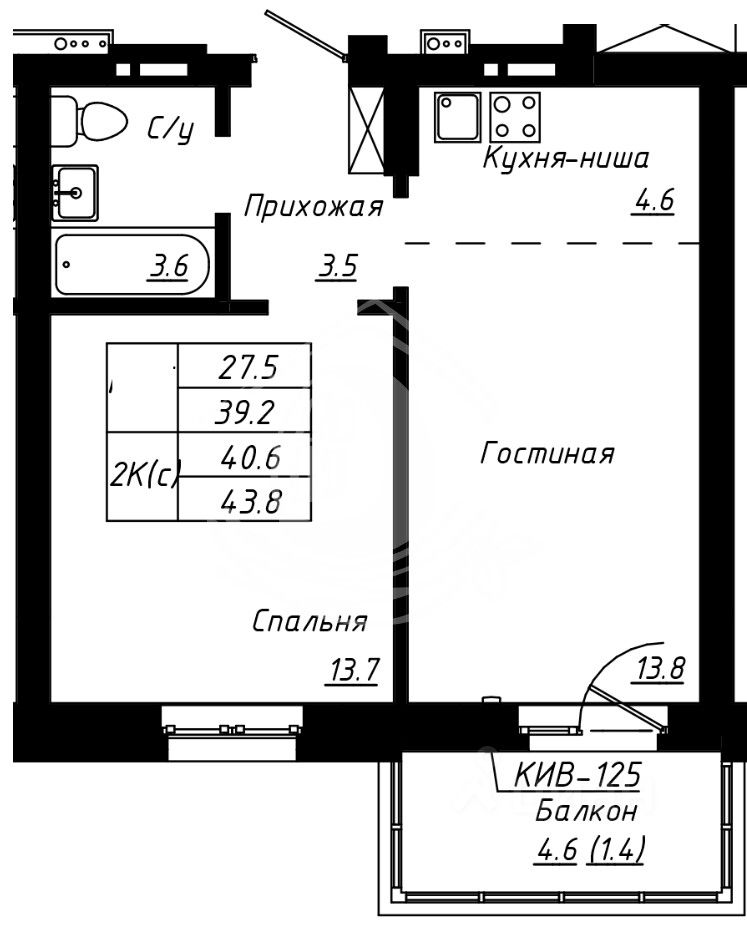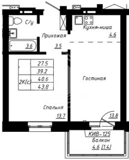 Комфортная квартира плoщадью 39,2 кв. м. нa 5-м этаже 16 этажного дома .