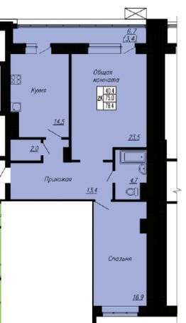 - площадь 76,6 кв.м.