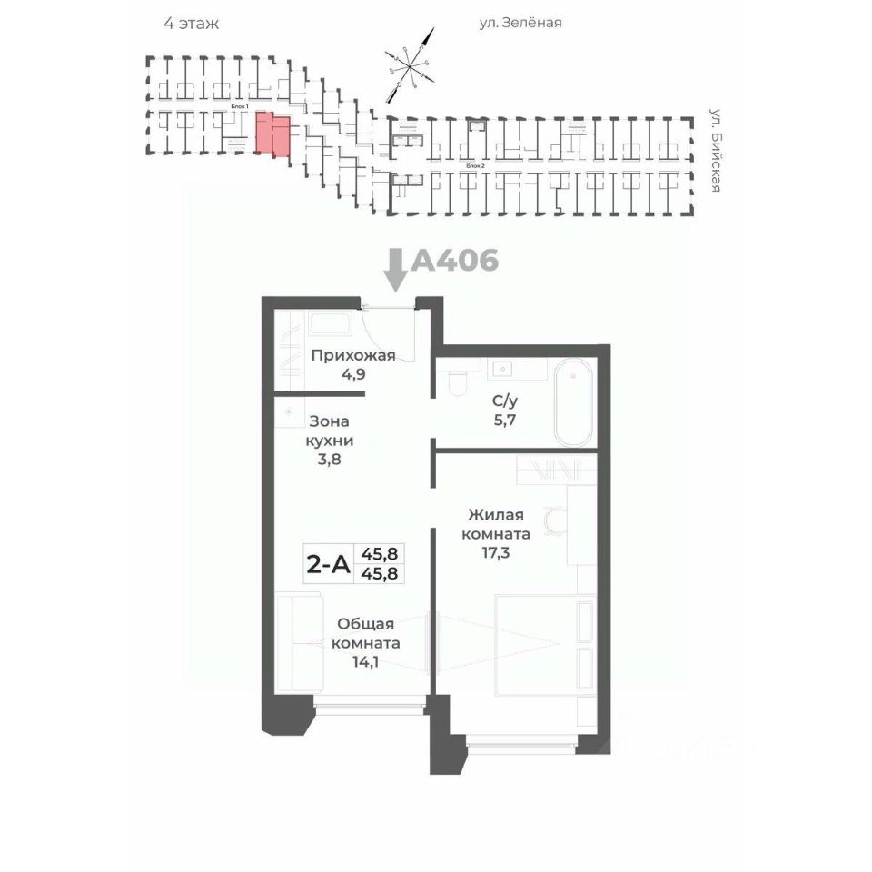 45,8 м²