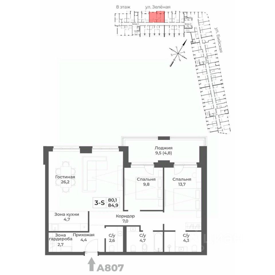 84,9 м²