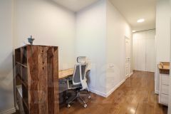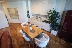 Пол выполнен из инженерной доски из массива дуба (Еssе) - это современный премиальный аналог классического паркета.