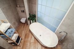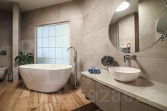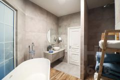 • Основной санузел - как отдельный арт-объект (ванна из камня + душевая зона и туалет)