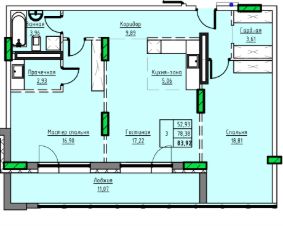 Продаётся 3-комнатная квартира в строящемся доме (Дом 1), срок сдачи: II-кв. 2029, общей площадью 83.92 кв.м., на 10 этаже. 10-ти этажный жилой дом в г. Заринске по адресу пр-т. Строителей, 29в. Проектом предлагается 3-х подъездный, 10-ти этажный жилой дом с встроенными на первом этаже помещениями общественного назначения. Исходя из ориентации дома входы в подъезды предусмотрены со стороны двора, тогда как в нежилые помещения - со стороны пр-т. Строителей. Вокруг здания предусматривается круговой проезд для автомобильного транспорта. Парковки для постоянного, временного хранения автомобилей, а также парковки для нежилых помещений предусмотрены, при этом согласно нормативам градостроительного проектирования Алтайского края от 29.12.2022 N 537, машино-мест может располагаться на прилегающей территории более 90 штук. Детские, спортивные площадки запроектированы с учетом нормативных расстояний от жилья и парковок. В жилом доме предусмотрено 222 квартир в том числе: