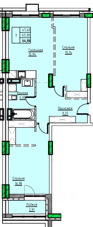 Продаётся 3-комнатная квартира в строящемся доме (Дом 1), срок сдачи: II-кв. 2029, общей площадью 64.84 кв.м., на 3 этаже. 10-ти этажный жилой дом в г. Заринске по адресу пр-т. Строителей, 29в. Проектом предлагается 3-х подъездный, 10-ти этажный жилой дом с встроенными на первом этаже помещениями общественного назначения. Исходя из ориентации дома входы в подъезды предусмотрены со стороны двора, тогда как в нежилые помещения - со стороны пр-т. Строителей. Вокруг здания предусматривается круговой проезд для автомобильного транспорта. Парковки для постоянного, временного хранения автомобилей, а также парковки для нежилых помещений предусмотрены, при этом согласно нормативам градостроительного проектирования Алтайского края от 29.12.2022 N 537, машино-мест может располагаться на прилегающей территории более 90 штук. Детские, спортивные площадки запроектированы с учетом нормативных расстояний от жилья и парковок. В жилом доме предусмотрено 222 квартир в том числе: