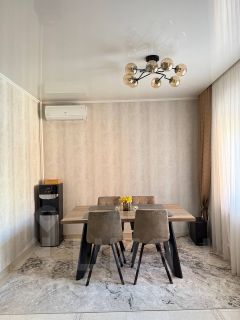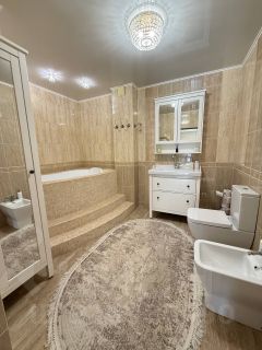Квартира может похвастаться продуманной планировкой: жилая площадь составляет 70 квадратных метров, а кухня занимает 19.3 квадратных метра, предоставляя достаточно места для комфортного приготовления пищи и семейных ужинов. Евроремонт, выполненный в квартире, подчеркивает ее современный стиль и создает приятную атмосферу для жизни.