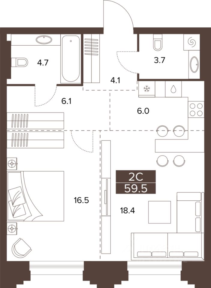 59,5 м²