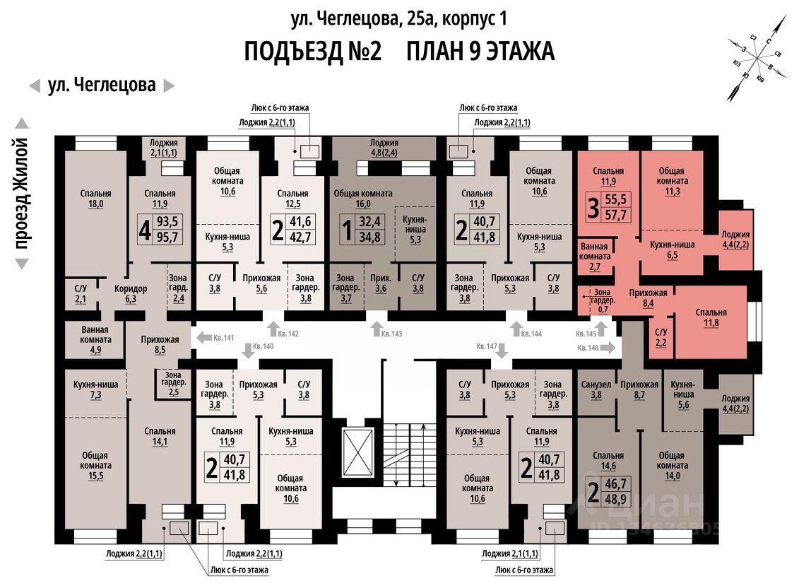 Предлагаем к покупке первый корпус, состоящий из двух подъездов. В каждом запроектированы квартиры с продуманной планировкой от 34,8-57,7 квадратных метров. Фасады выполнены в стилизованных формах с использованием остекленных лоджий и архитектурной подсветкой. Высота 1 и 9 этажа - 3 метра.
