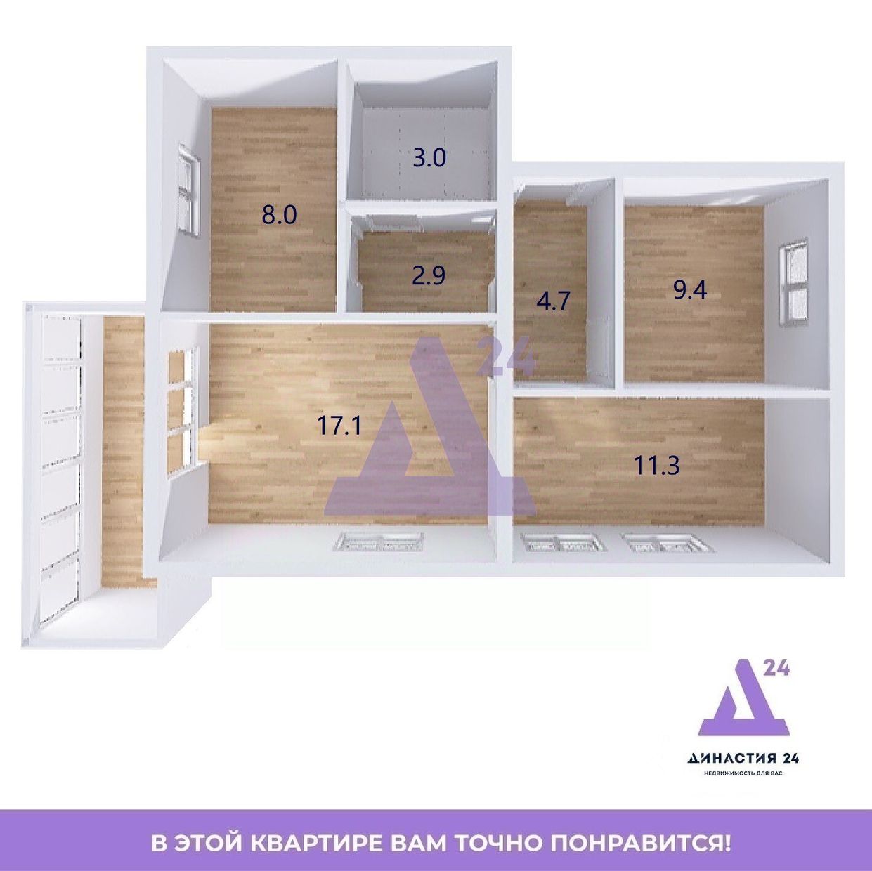 Планировка удобная и продуманная: две изолированные спальни, гостиная, кухня площадью 8 м², совмещённый санузел и балкон. Всё необходимое для жизни семьи, где у каждого может быть своё личное пространство.
