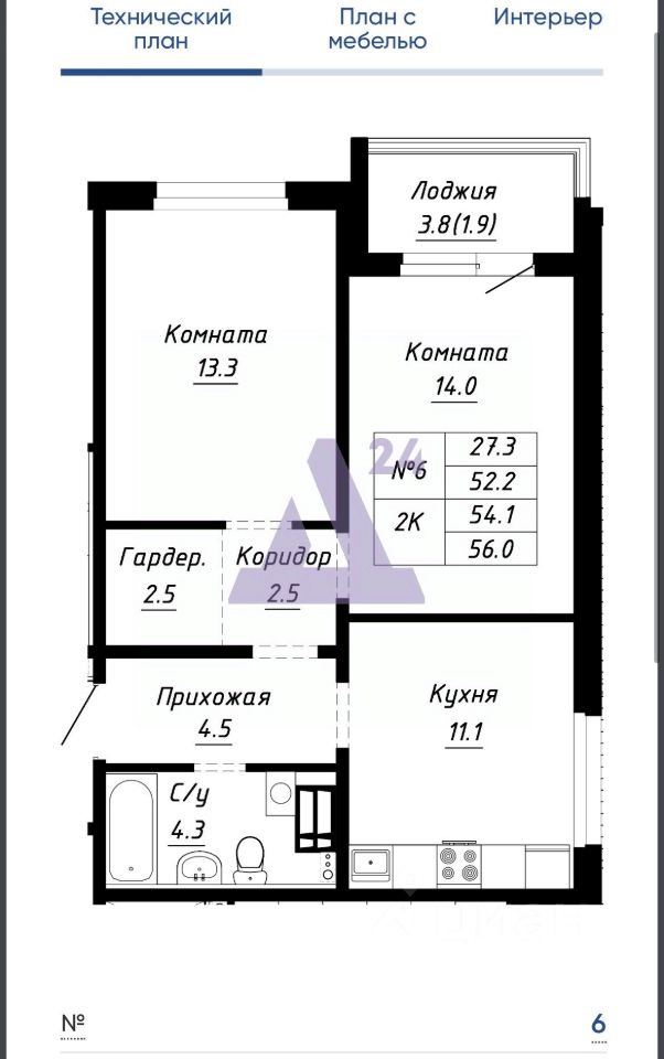 Общая площадь54,1 м²