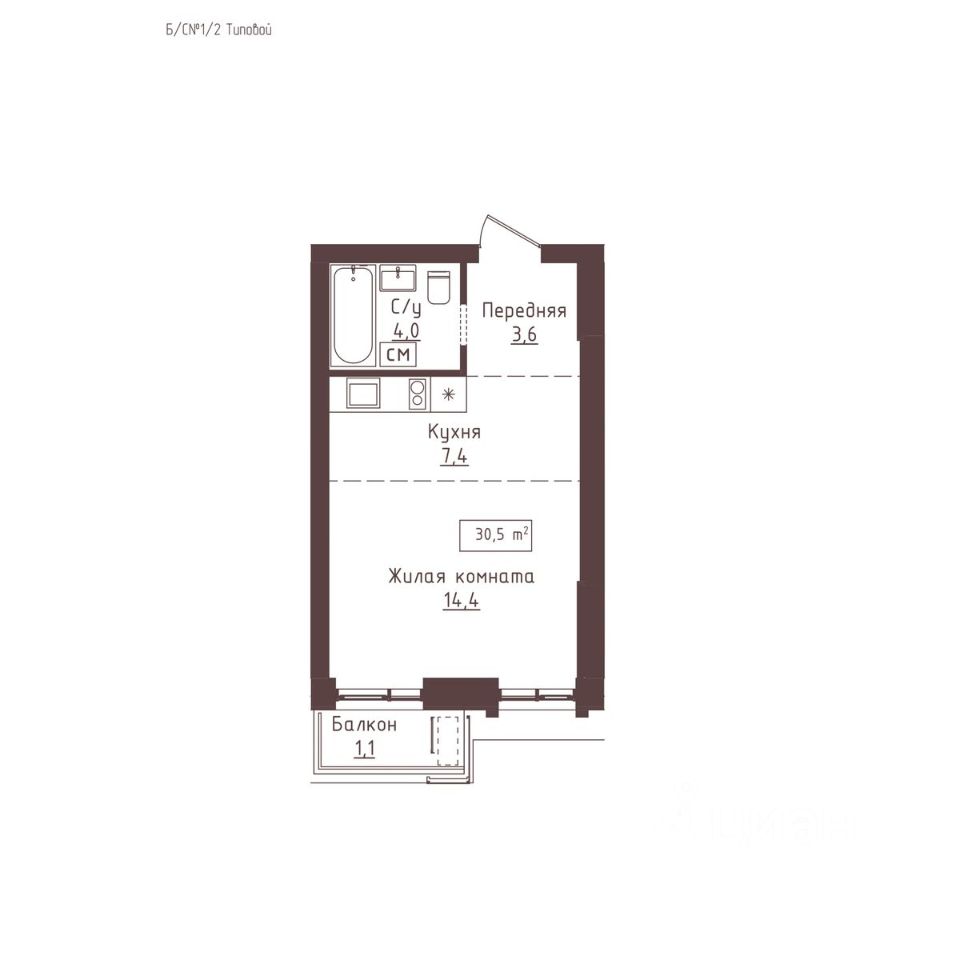 Общая площадь30,5 м²