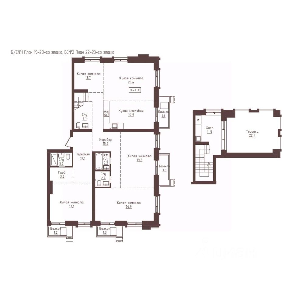 Общая площадь184,4 м²