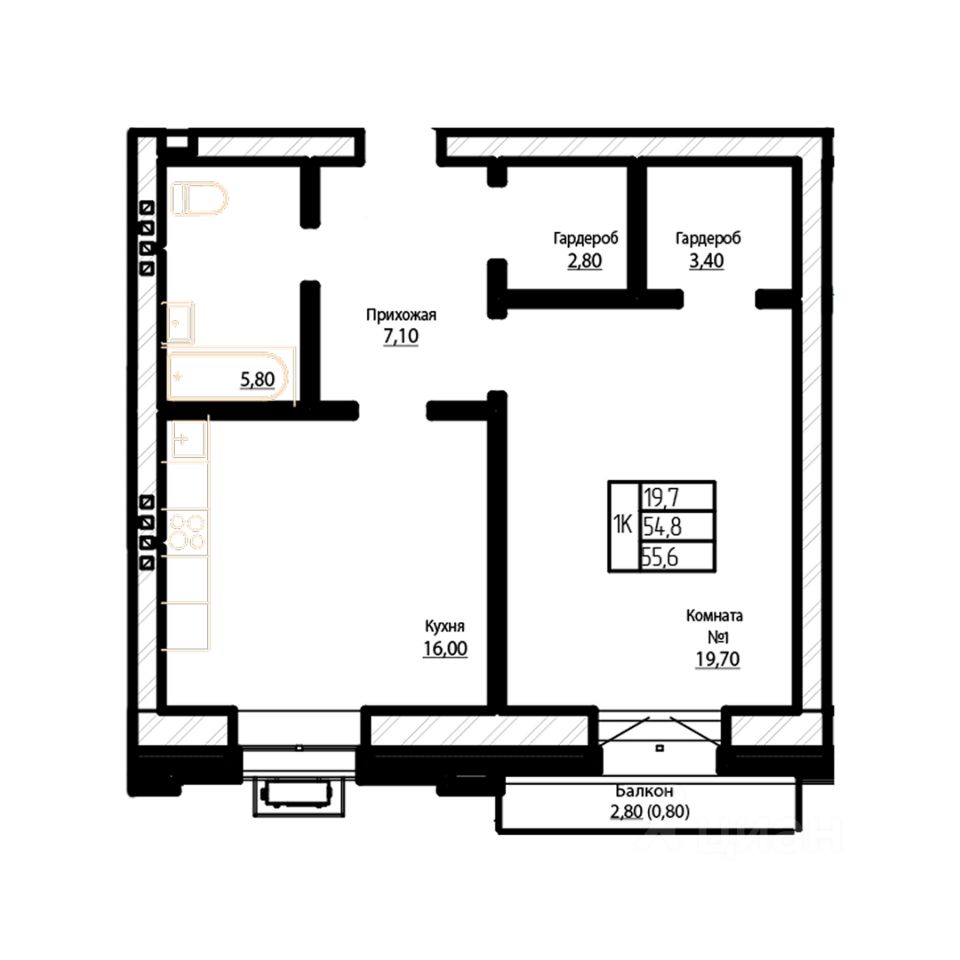 Продаётся 1-комнатная квартира в строящемся доме (Дом 1), срок сдачи: IV-кв. 2027, общей площадью 55.6 кв.м., на 3 этаже. Непревзойденная эстетика и комфорт.