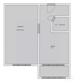 Комнaтa 18,52 кв., разделенная на гостинную и комнату
