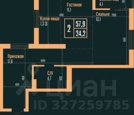 57,9 м²