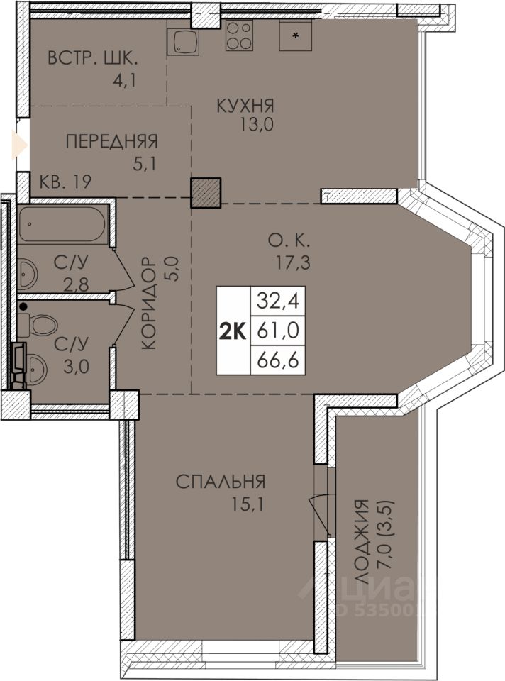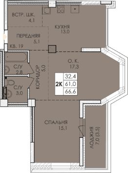 68,9 м²