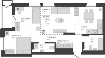 Общая площадь70,2 м²
