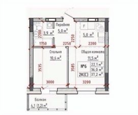 36 м²