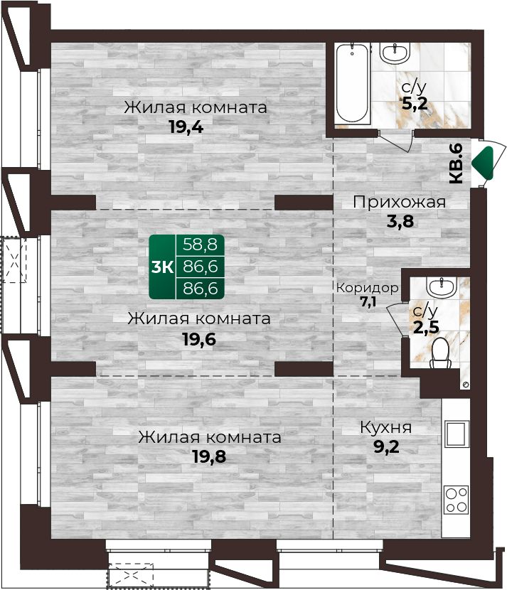 86,6 м²