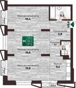 87,8 м²