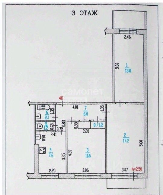 Квартира на комфортном третьем этаже в девятиэтажном доме!