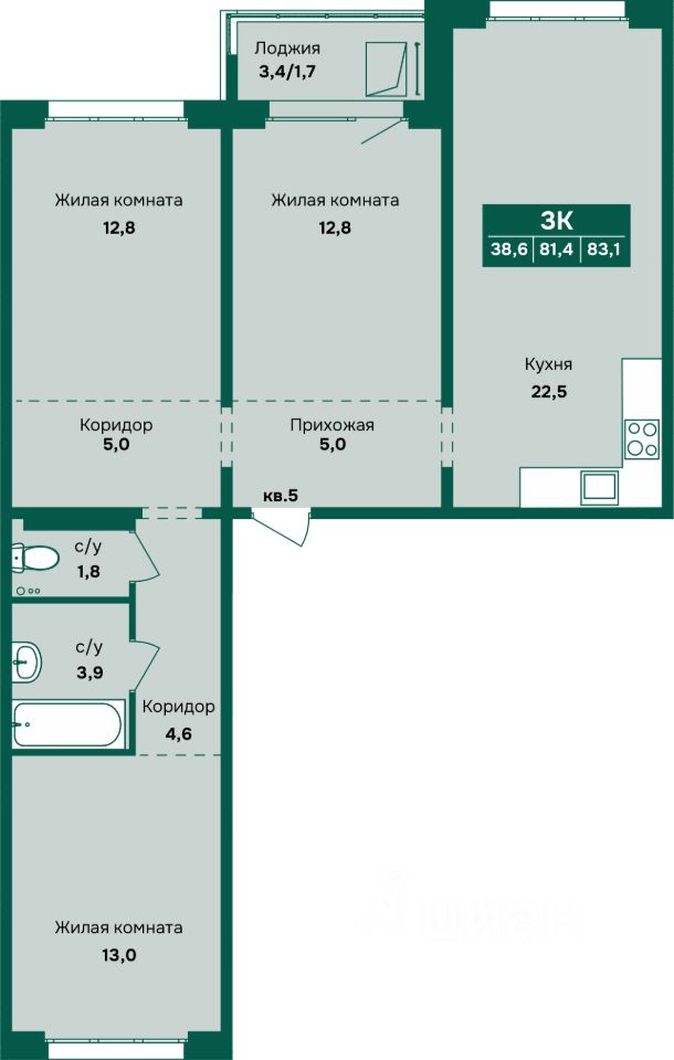 Продаётся 3-комнатная квартира в строящемся доме (Корпус 4), срок сдачи: III-кв. 2027, общей площадью 83.1 кв.м., на 2 этаже. Новый жилой комплекс "Камчатка" от группы компаний "Союз" расположен по адресу: г. Барнаул, по ул. Власихинская.