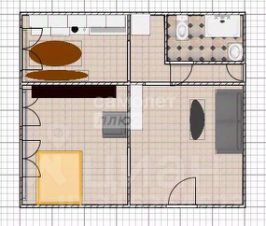 -Площадь дома - 45,7 м2 , кухня - 9 м2, комнаты 15 м2 и 12 м2.