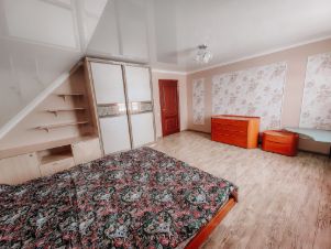Три отдельные спальни: 20кв.м, 22 кв.м, 24 кв.м, бытовка на втором этаже (гладильная комната), каминный зал в технике "два света" 25 кв.м., прихожая (оранжерея), кухня с выдачей к мангальной зоне 15 кв.м., раздельный санузел, в ванной комнате установлен душ, бытовка в отдельном помещении, погреб с выходом из дома, подполье.