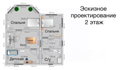 Второй этаж 83 м2 с высотой потолков 2,7м. предусматривает: 3 спальни, с/узел, гардеробная, коридор.