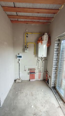 Внутренняя отделка включает в себя шпаклеванные стены, разводка систем "теплый пол" по всему дому, горячего и холодного водоснабжения. В котельной разводка выполнена из нержавейки. Покрытие пола выполнено полусухой стяжкой и готово к любому виду чистового покрытия.